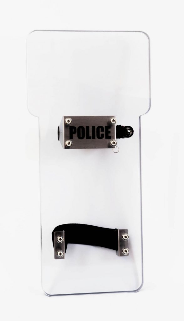 The TAC II Shield was created for larger LEOs and provides a wider viewing area. Like the TAC Shield, the TAC II Shield is used for anticipated dangers where the “immediate response” factor (time) is not as critical as with the I.R. Shield. The TAC II Shield is a great tool for responding to and engaging an active shooter. These Shields are very popular with first responders, Warrants, SROs, Security Check points (courts, airports, etc.), TNT (tactical narcotics), SWAT (attic Shields and linear tactics) Marine Patrol, etc. Like the TAC Shield, the TAC II Shield can be mounted to our locking headrest mount, cages, podiums, seat backs (front and rear) or at staging areas throughout buildings.